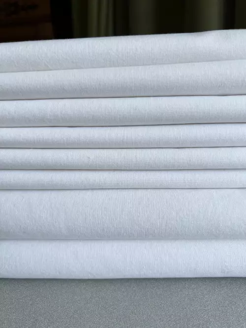 - вареный хлопок без эффекта крэширования - 100% хлопок, плотность ткани 135 гр/м2, цвет белый (холодный),