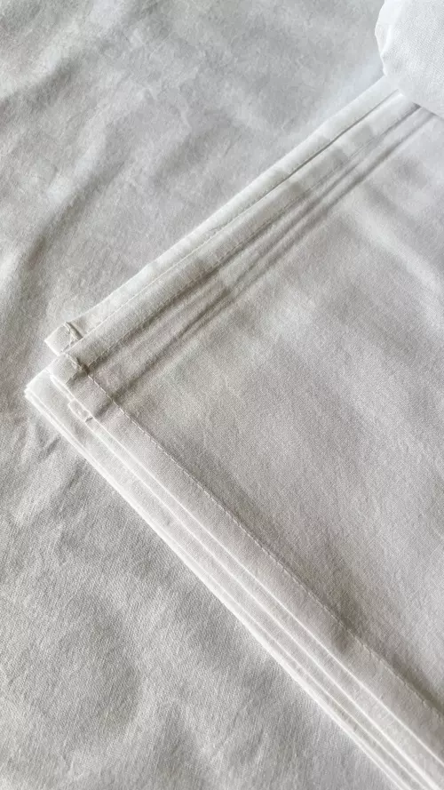 Для изготовления простыни в белом цвете мы использовали вареный хлопок - полотно из 100 % натурального хлопка. Сохраняют форму и цвет после множества стирок.