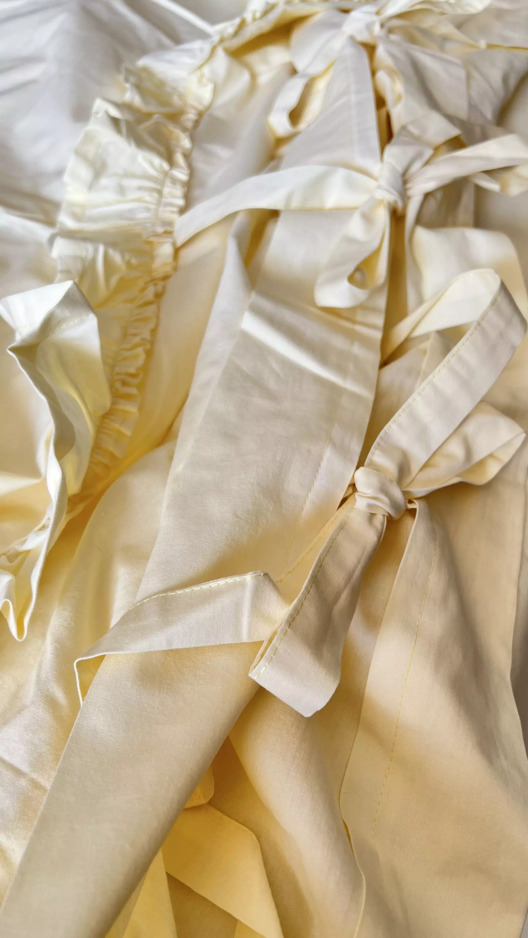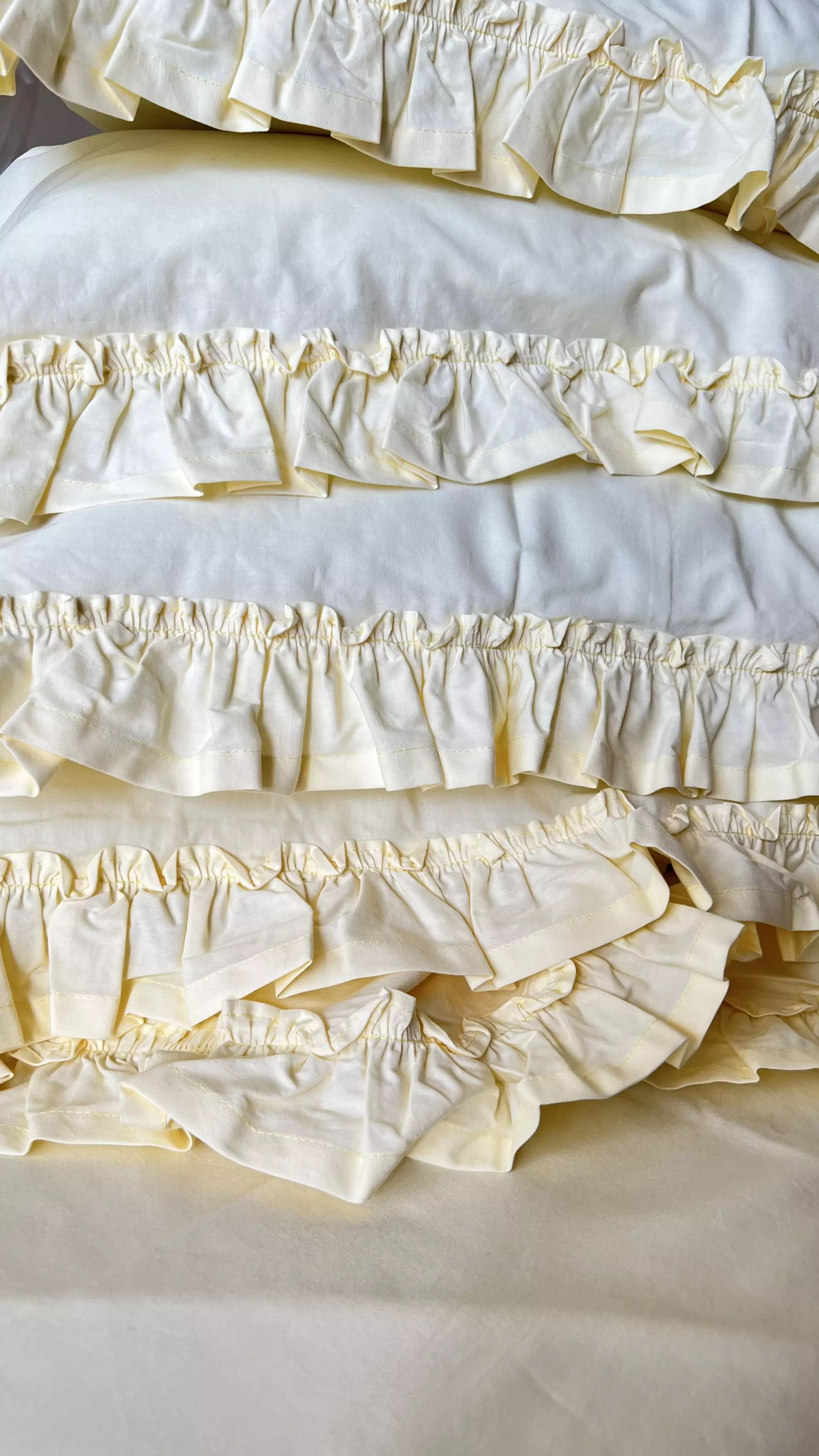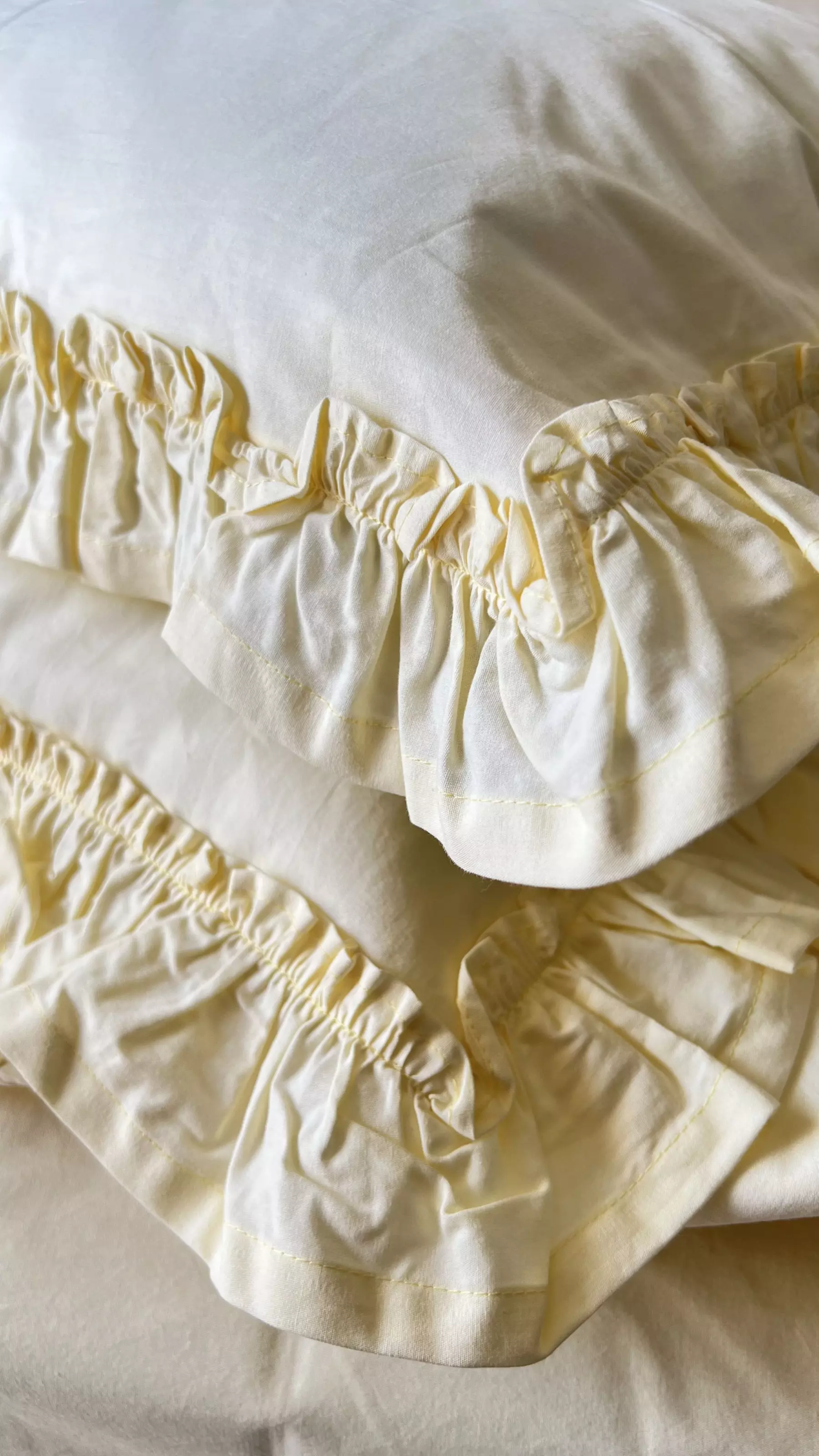 Монохромное исполнение комплекта в сливочно-желтом цвете добавит в вашу спальню солнечного света, тепла, и благородства.