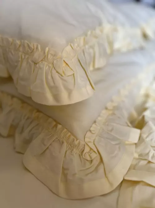 - наволочка с глубоким запахом, размер 50*70 см (+/- 1см) - 2 шт, по периметру декорированы рюшей из основной ткани шириной 7,5 см,