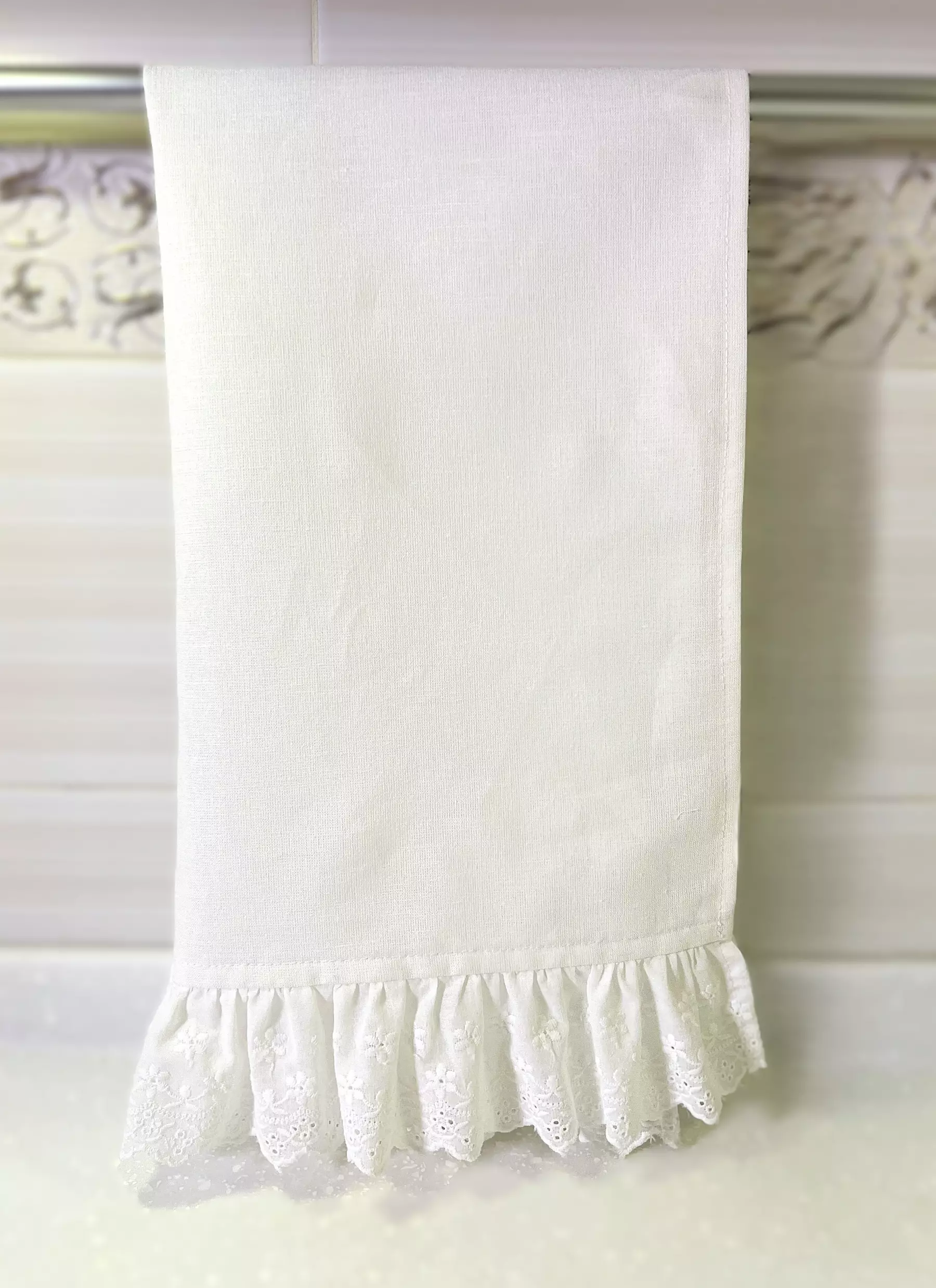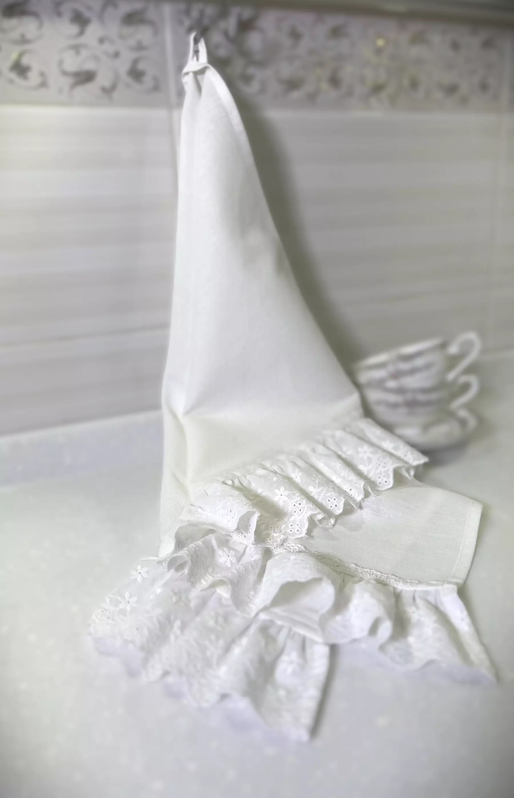 Кухонное полотенце с оборками "Шепот белого льна" отшито в винтажном стиле и выполнено из натуральной смесовой ткани. Полотенце с оборками - универсальный элемент декора и практичный аксессуар на вашей кухне. Оно сочетает в себе эстетику, функциональность, позволяя создавать уютную атмосферу на кухне.